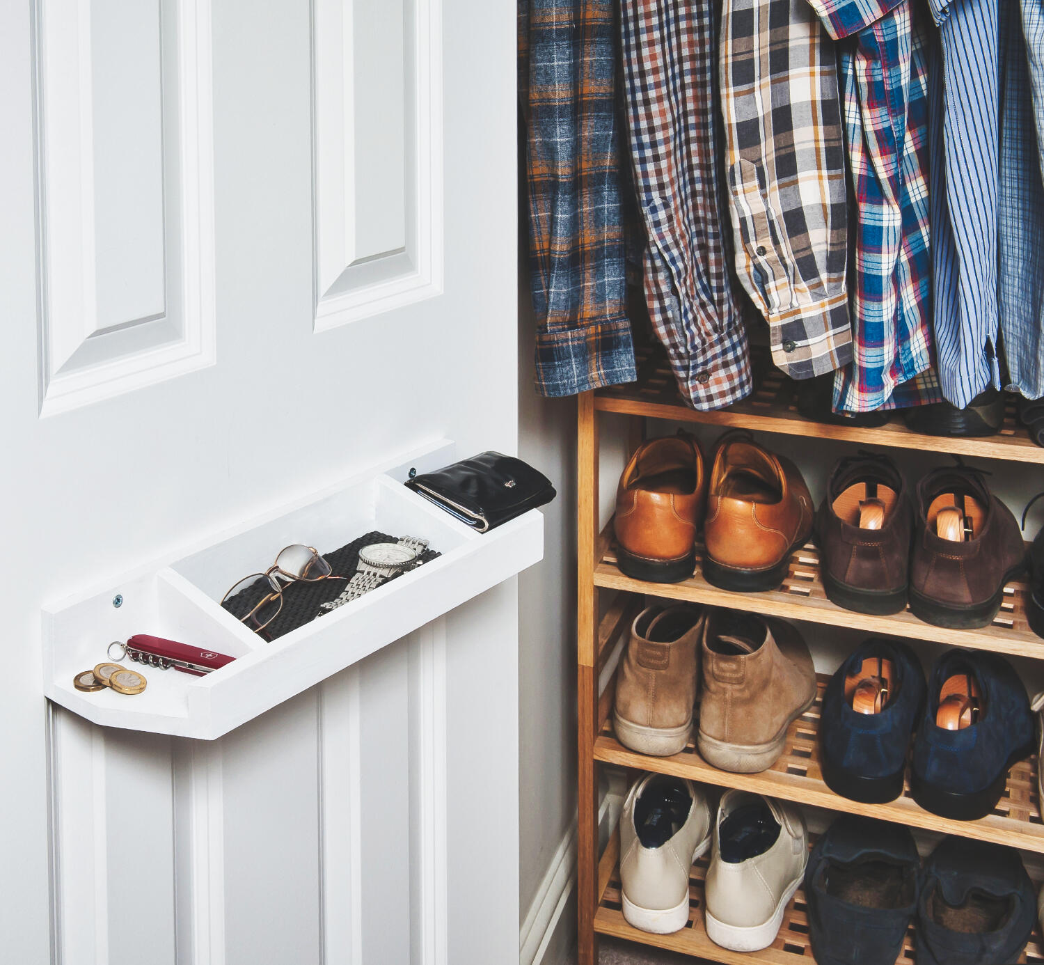 The worlds first self-supporting "men's organiser" shelf for wardrobes